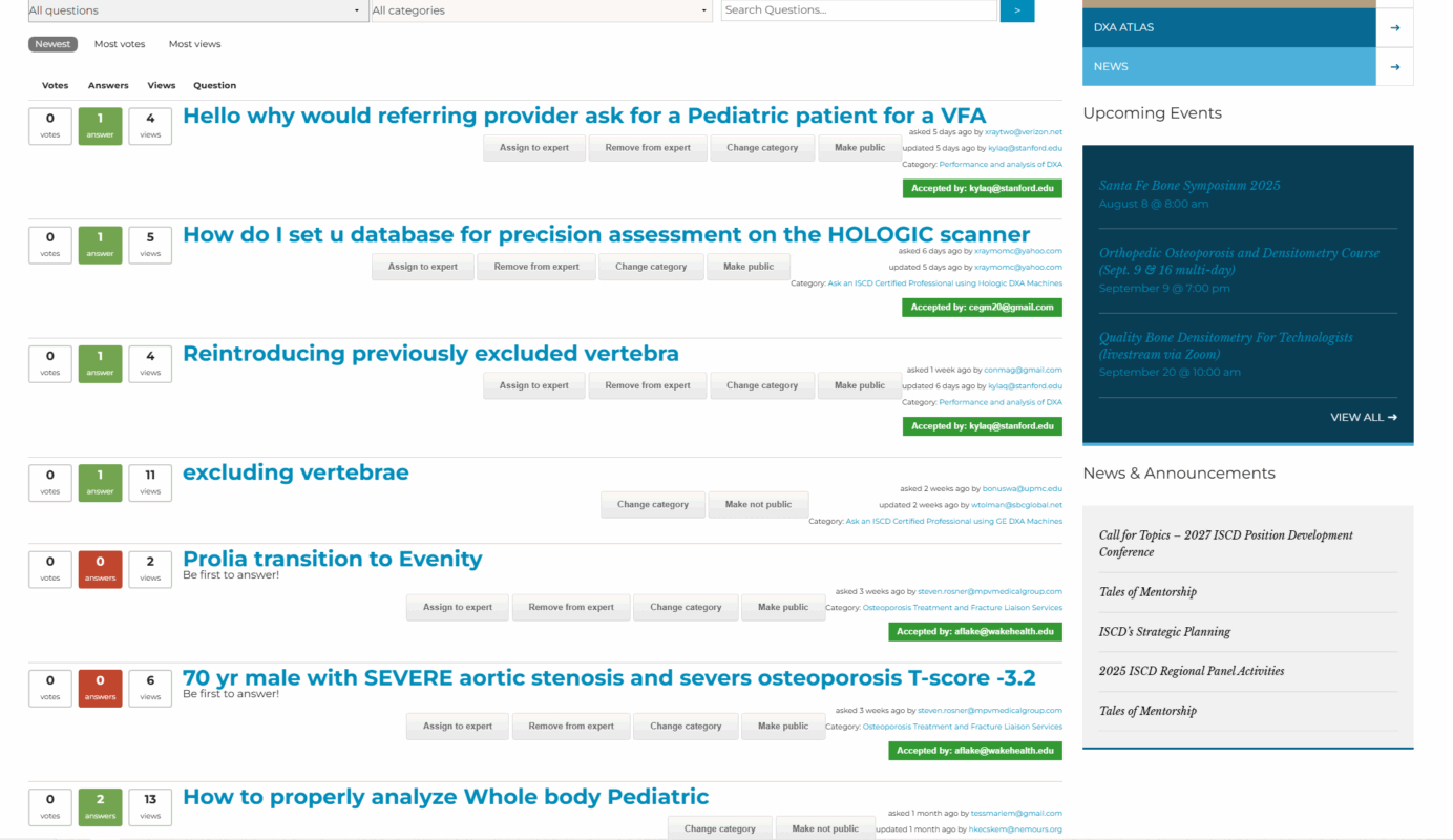 Members may submit scientific inquiries about bone densitometry and general questions about ISCD Bone Densitometry Courses and certification.