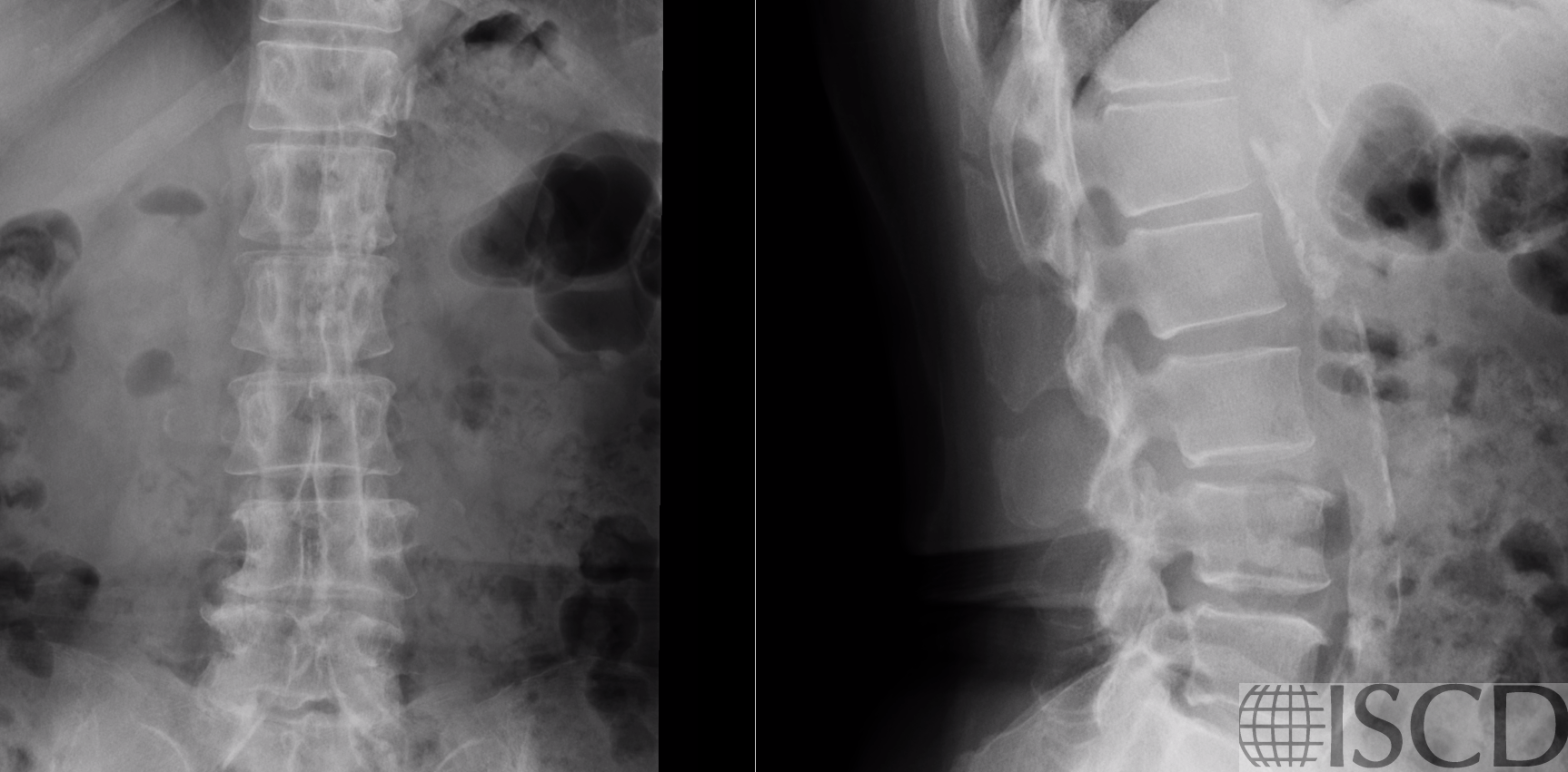 Figure 2 – X-rays of lumbar spine showing dense aortoiliac calcification.