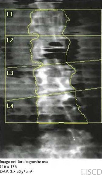 The DXA image shows what appears to be an artifact ove L2.on a Hologic lumbar spine image. The single energy images proves that the internal artifact is bowel gas. The single energy view is a Hologic-specific view that looks like a traditional radiograph, since the image is single energy. Bowel gas will be a potential source of an internal artifact in most patients. and bowel gas patterns will be different between baseline and follow-up studies.