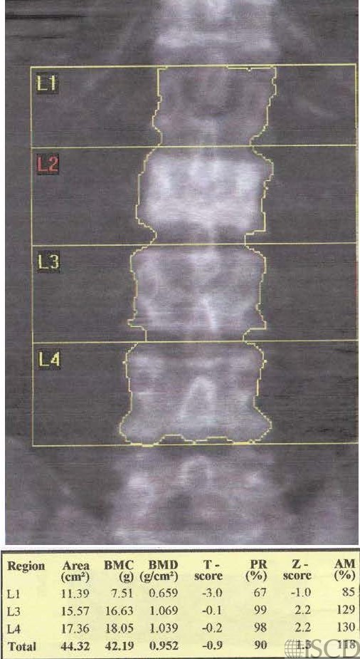 This is a baseline Hologic lumbar spine DXA scan.