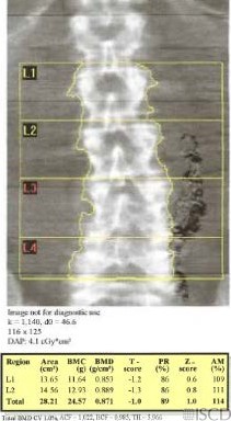 This image shows the pelvic coils lateral to L2-L4 on the Hologic spine image. The pelvic coils show up as a black hole-type artifact.