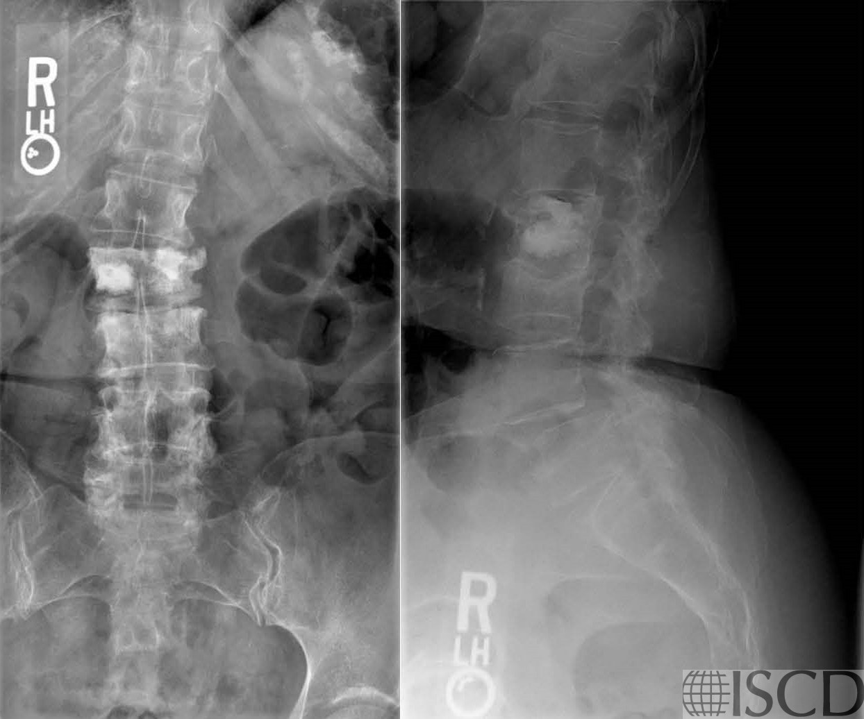 The accompanying radiographs show the kyphoplasty. There is also compression at L3 and therefore L3 should also be removed from analysis.